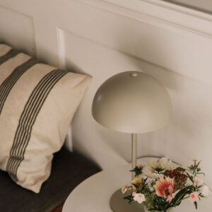 Icon är en läcker bordlampa i mattlackerad metall med kromade detaljer. Här i färgen latte, en harmoniskt beige nyans. Skärmen är vinklingsbar och perfekt som läslampa på skriv-, soff- eller sovrumsbordet. 200 cm lång vit textilkabel med brytare.