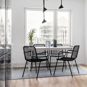 Shift är en stilren och häftig pendel med 3 separata svarta metallskärmar som är justerbara i diameter, från 60 cm till hela 120 cm. Varje kupa är vridbar och har vit insida. Krokupphängning och tvistade svarta textilkablar.