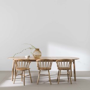 Det ovala matbordet 205 är ett speciellt kärt bord i Rainbow kollektionen. Den smart konstruerade designen möjliggör en sömlös förlängning av bordet, vilket gör att du är lite extra beredd för alla tillfällen till fler runt bordet. Den ovala formen skapar också en speciell och trevlig atmosfär. Det finns i både massiv varm oljad ek eller blond ask.