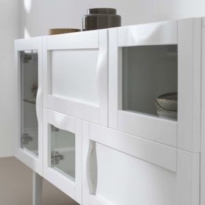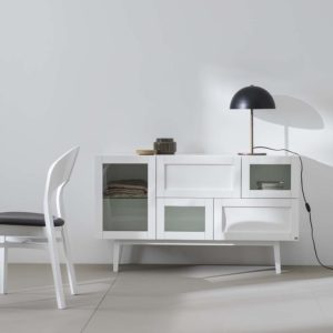 Rainbow sideboard och vitrin är en djärv och träffsäker lek med raka linjer och med handtag i en innovativ och böljande form. Ordning och reda bakom glasluckorna, för att framhäva dina kära ting, eller ”alla-måste-ha” saker i ett kaos bakom träluckorna. Sideboard och vitrin har dämpade luckor som ger en långsam och behaglig stängning. Glas och träluckor ingår, du väljer själv vilka du monterar.