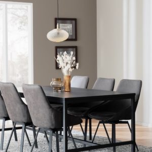 Populära Alison stol med underrede som har snurrfunktion. Stolen är i ett tåligt grått microfibertyg med ben i pulverlackad svart metall. Alison har en stoppad sits med hög sittkomfort i kupad design och ben med snurrfunktion i 360 grader. Stolen passar perfekt runt matbordet men även som udda stol till skrivbordet. Finns i flera utföranden.