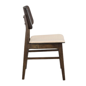 Nagano stol i massiv brunlackad ek med sits i beige tyg. Stilren, komfortabel och stabil stol med fina arbetade detaljer. Stolen ingår i serien Nagano och finns i flera färger.