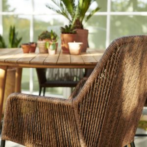Midway är en mycket skön karmstol i twistad konstrotting med mjuka moderna former. Stolen passar utmärkt till våra matbord i teak. Sittdyna i svart olefinväv ingår. Från Brafab.