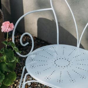 Soffa med ”vintagekänsla” i vitt epoxylackerat stål. Levereras med dyna i grått.