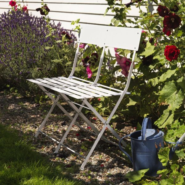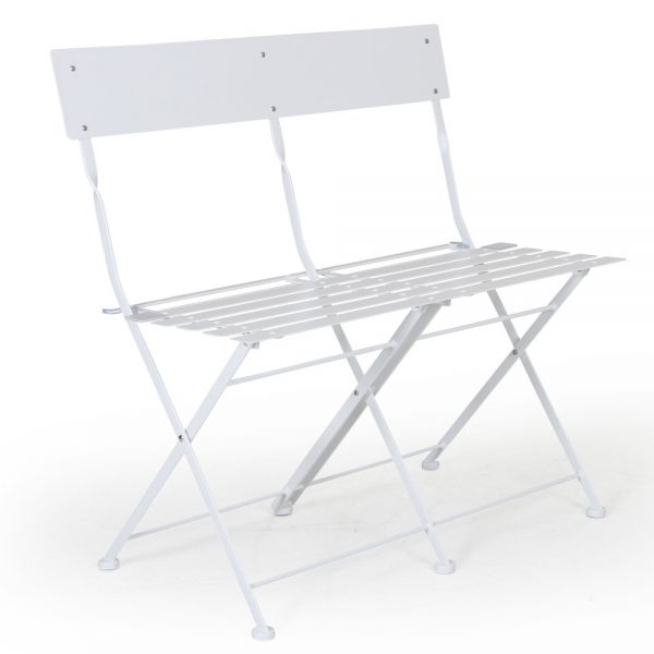 Fällbar bänk i lackerat stål. Matchar Esino caféset och Sangro brickbord i samma material och färger. Från Brafab.