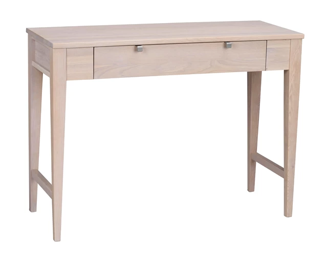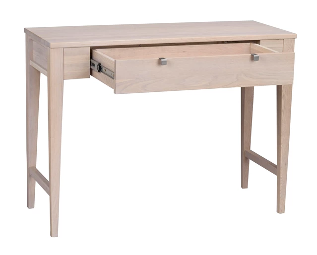 Confetti avlastningsbord i massiv vitpigmenterad ek. Två lådor fram med knoppar i metall. Enkelt att inreda ditt hem med och fungerar lika bra som skrivbord. Avlastningsbordet ingår i hallserien Confetti.