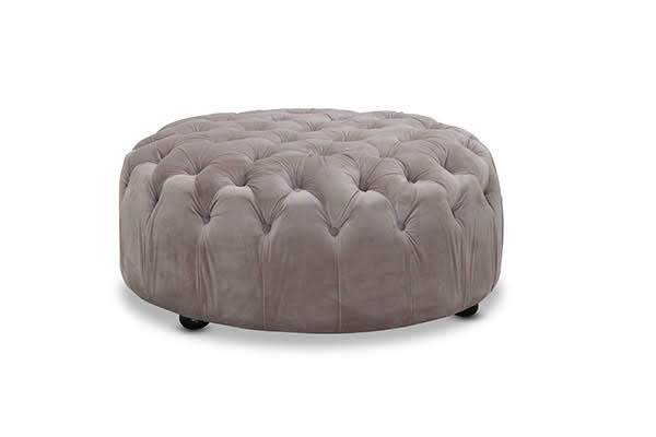 Sittpuff klädd i grått sammets tyg. Kan placeras överallt i hemmet som en extra sittplats och snygg interördetalj.