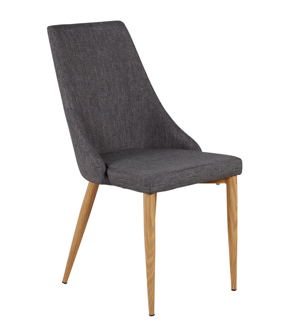 Slipp kompromissa mellan komfort och design med en matstol från serien Leone! Den genomtänkta helklädda designen är robust med ben i ek folierad metall och rygg/sits i mörkgrått polyestertyg med mjuk stoppning. Lättare montering krävs.