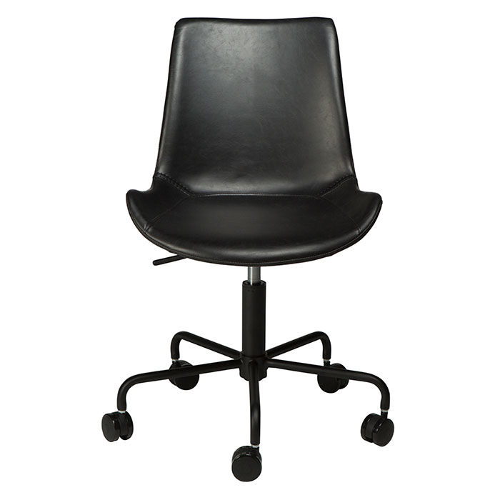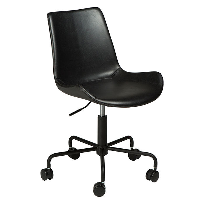 Kontorsstol Hype är en stilren och bekväm kontorsstol. Stolen är klädd i ett härligt svart vintage konstläder. Sitsens höjd är reglerbar med hjälp av spaken undertill och flyttar sig enkelt tack vare den 5-stjärniga foten med hjul.