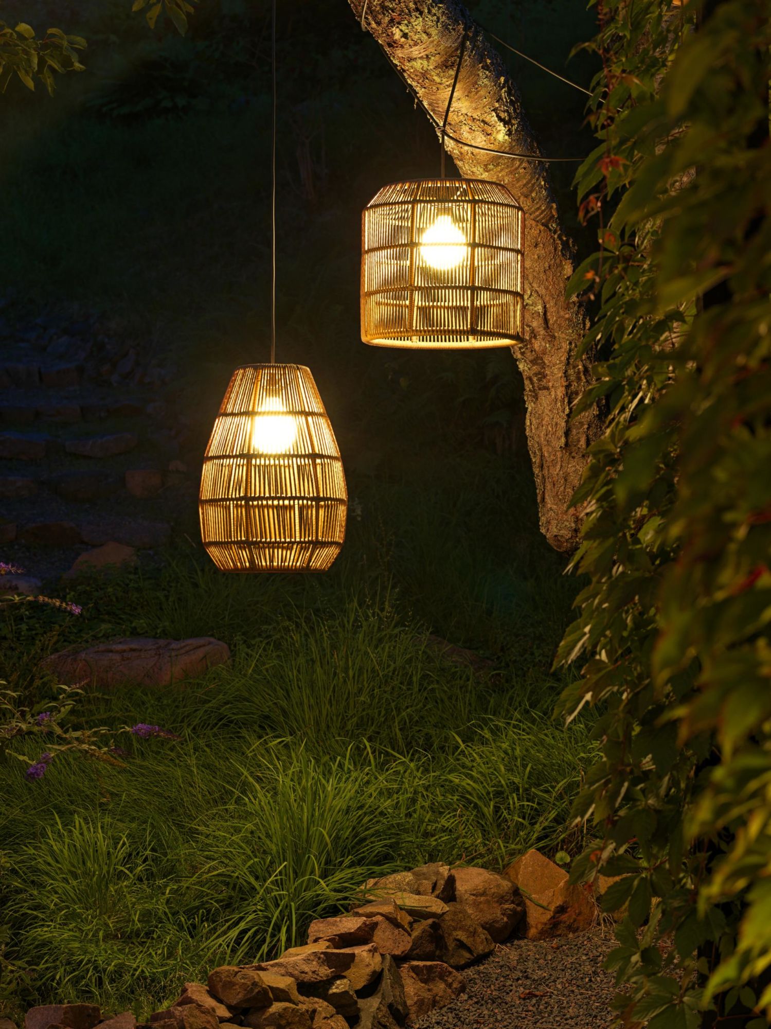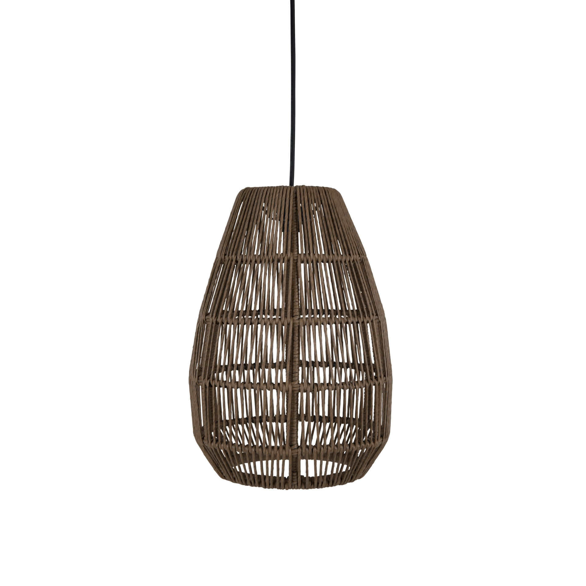 Vackra lampskärmar i twistad konstrotting. Den transparenta skärmen är flätad för hand och oavsett om du placerar lampan i uterummet eller på terrassen skapar den en riktigt ombonad känsla med sitt varma stämningsljus. Komplettera med utesladden Cord (köps separat).