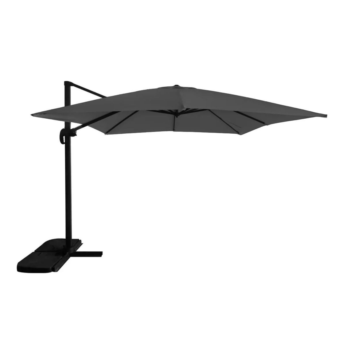 Roma DeLuxe är ett smidigt parasoll med sidoarmshäng. Här med rektangulär parasollduk 3,0×3,0 m. Du fäller enkelt upp och ned parasollet och kan med lätthet rotera det så du får skugga där du vill. Smart kryssfot som går att fästa i altan, det finns även smidiga tyngder att köpa till som placeras i de fyra ”hålen” i foten. Komplettera med 1-4 tyngder för ett parasoll som står stabilt trots vind. Till Roma DeLuxe ingår ett parasollskydd.