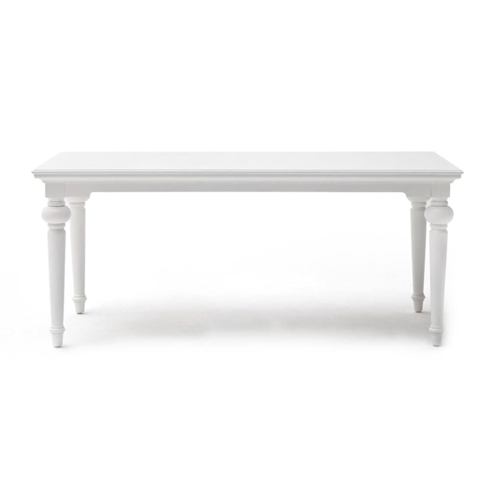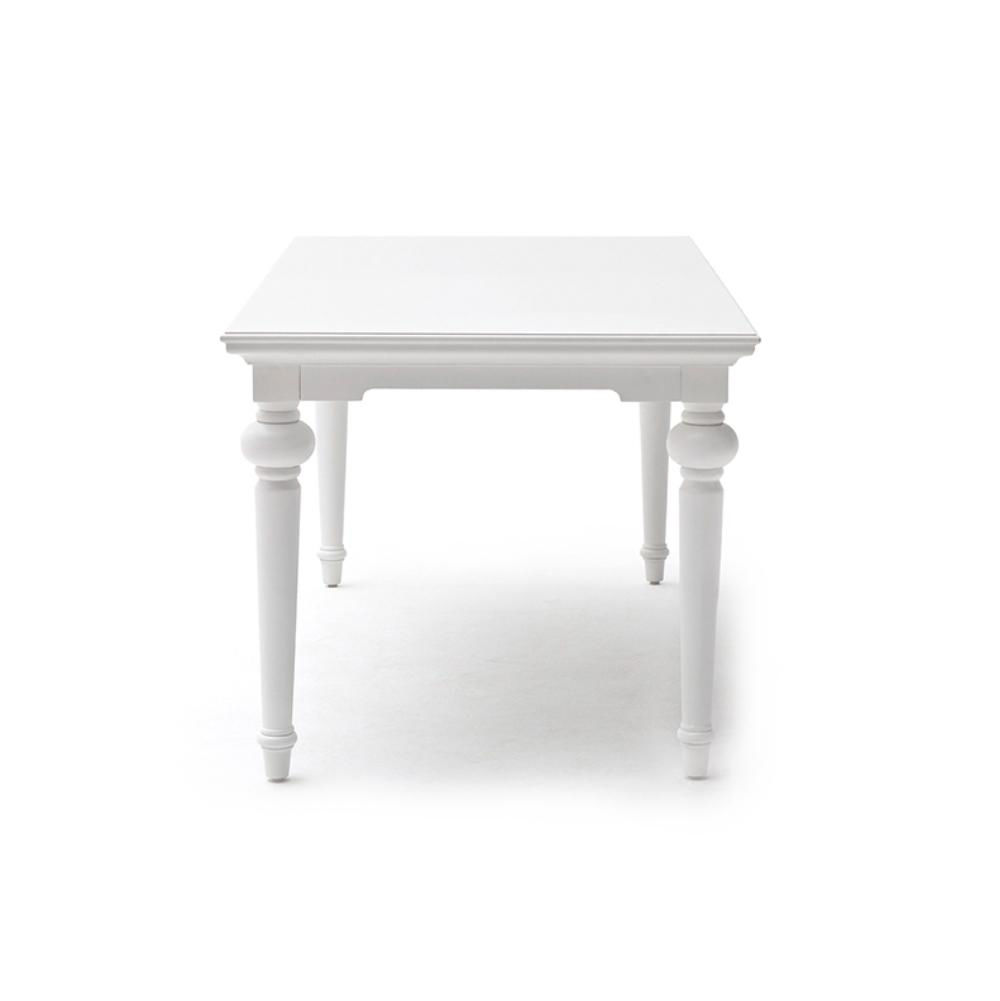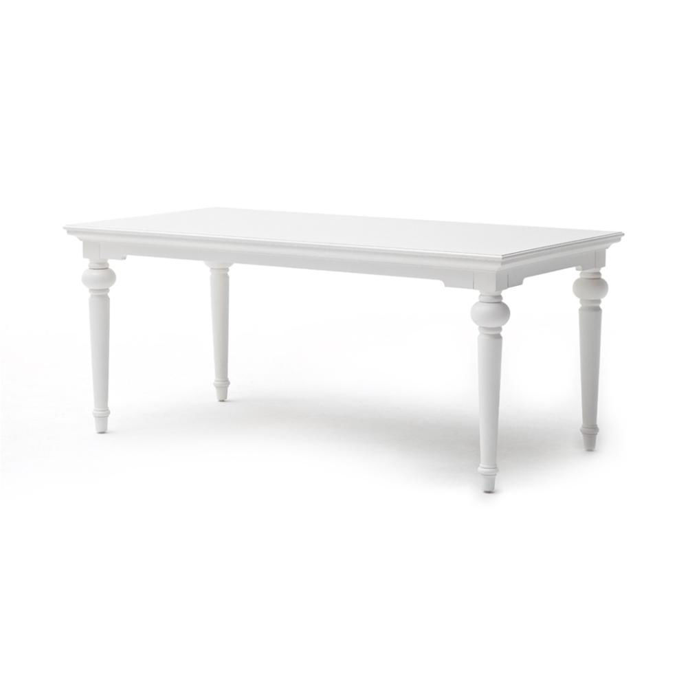 Matbord i serien Halifax, ett rejält bord som är 100×240 cm. Bordet är i massivt vitlackat trä och har fina välarbetade detaljer. Denna möbel passar in i flera olika stilar och miljöer. Bordet är lika fin att kombinera med en enkel pinnstol som en rejälare tygklädd fåtölj eller varför inte bryta av helt med en stol i metall?