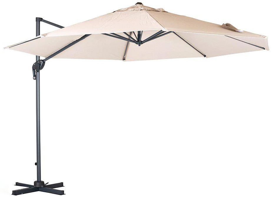 Candy är ett smidigt parasoll med sidoarmshäng. Här med rund parasollduk 350 cm. Du fäller enkelt upp och ned parasollet och kan med lätthet rotera det så du får skugga där du vill. Smart kryssfot som går att fästa i altan, det finns även smidiga tyngder att köpa till som placeras i de fyra ”hålen” i foten. Komplettera med 1-4 tyngder för ett parasoll som står stabilt trots vind. Till Candy parasollet ingår ett parasollskydd.