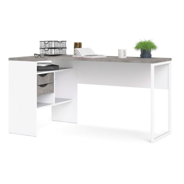 Function plus 80118 är ett snyggt och praktiskt hörnskrivbord. Med stomme i vit MDF med detaljer i betongliknande folie. Levereras omonterad.