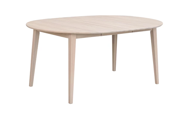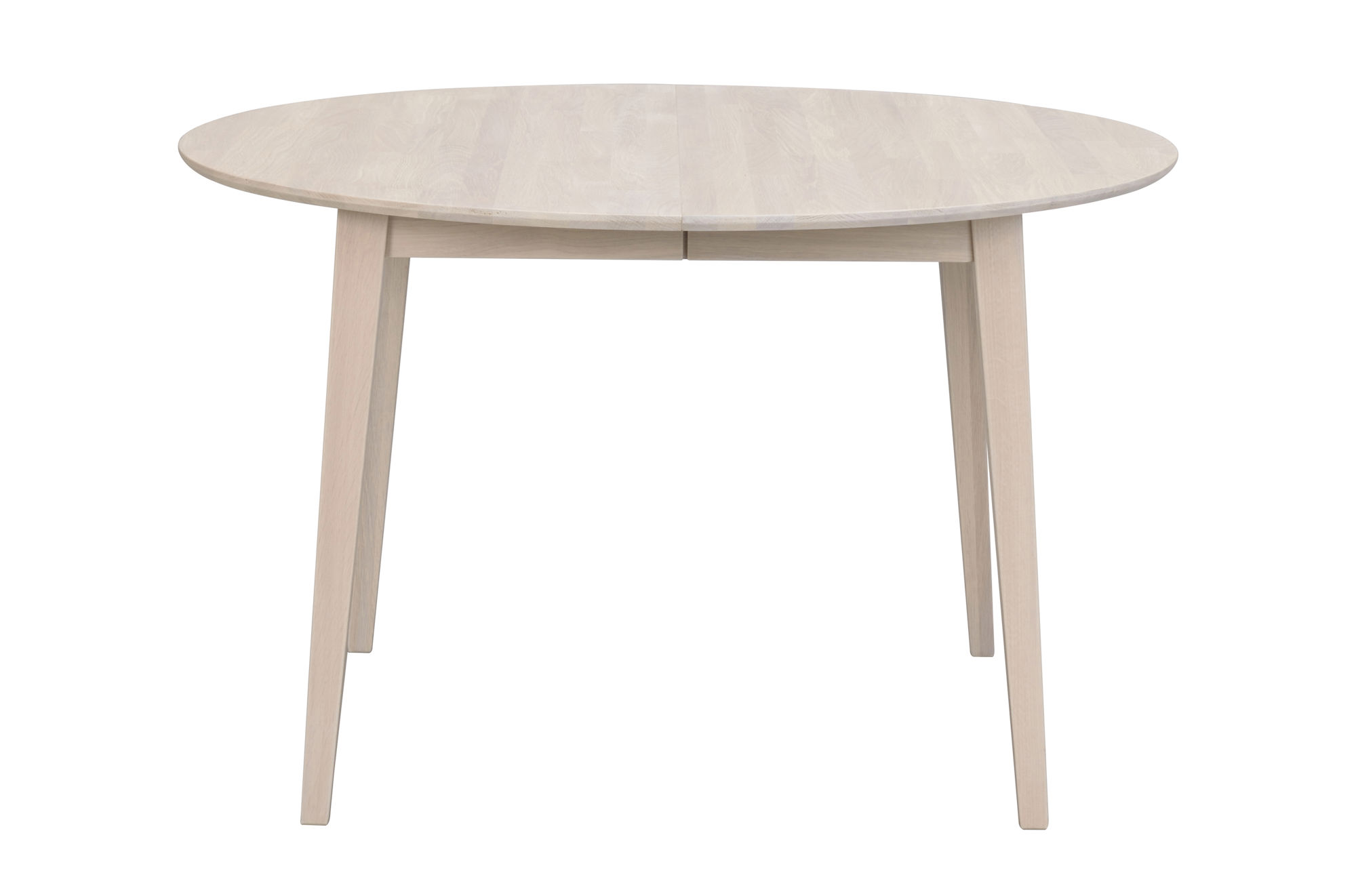 Praktiskt matbord i smidigt runt format med en diameter på 120 cm. Det går att förlänga till 165 cm tack vare en medföljande iläggsskiva, och det går även att köpa till ytterligare ett 45 cm ilägg. Bordets maxlängd blir då 210 cm. Bordet består av massiv fingerskarvad ek som behandlats med vitpigmenterad olja. Matbordet ingår i vår breda Filippa-serie som även har förvaring som passar fint till. Matbordet består av 100% FSC-certifierat trä och är ett bra och hållbart val.