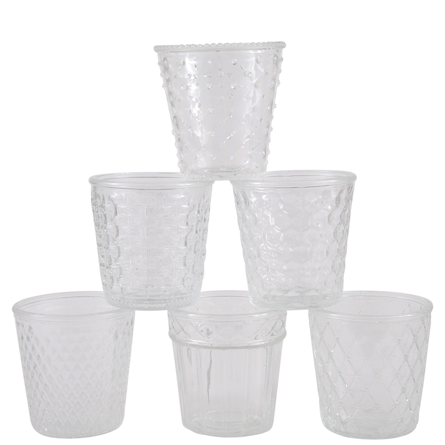 Fin kruka/ljuslykta i klarglas. Finns i olika mönster.