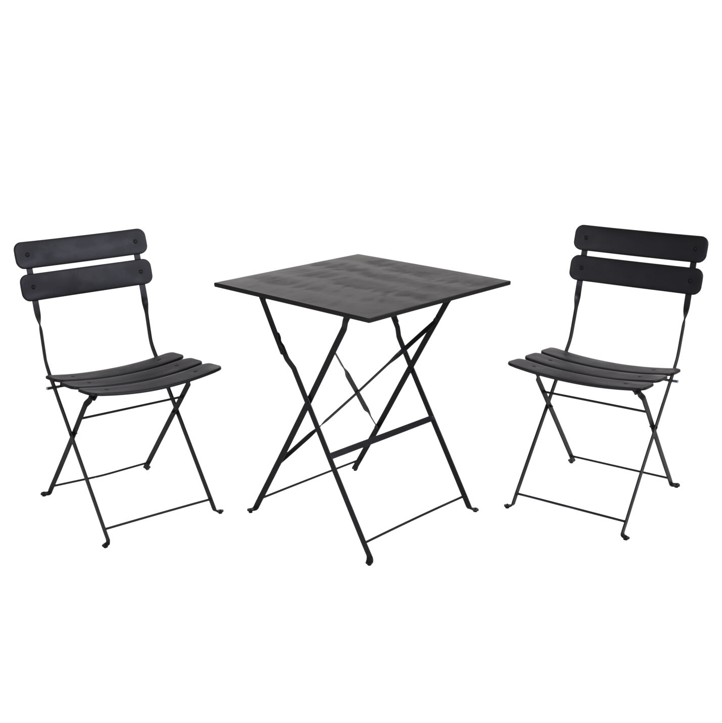Fällbart set med bord och två stolar i fina färger. Alla delar i lackat stål. Från Brafab.