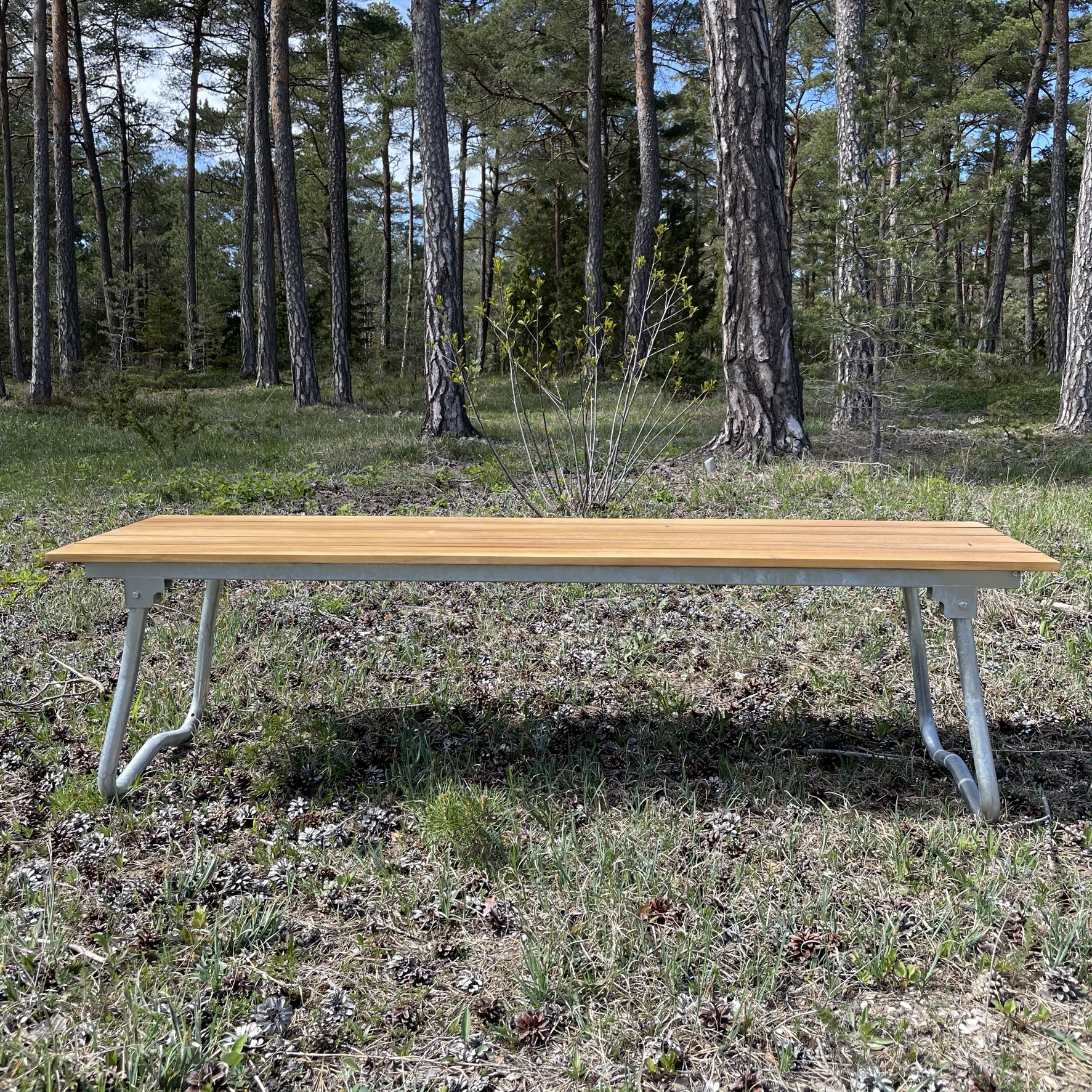 Vacker, stilren och klassisk är ord som beskriver Sigtuna – vår egna kollektion med utemöbler i teak/galvaniserat stål. Bänken går att fälla ihop, benen kan enkelt vikas in under bänken för smidig förvaring.