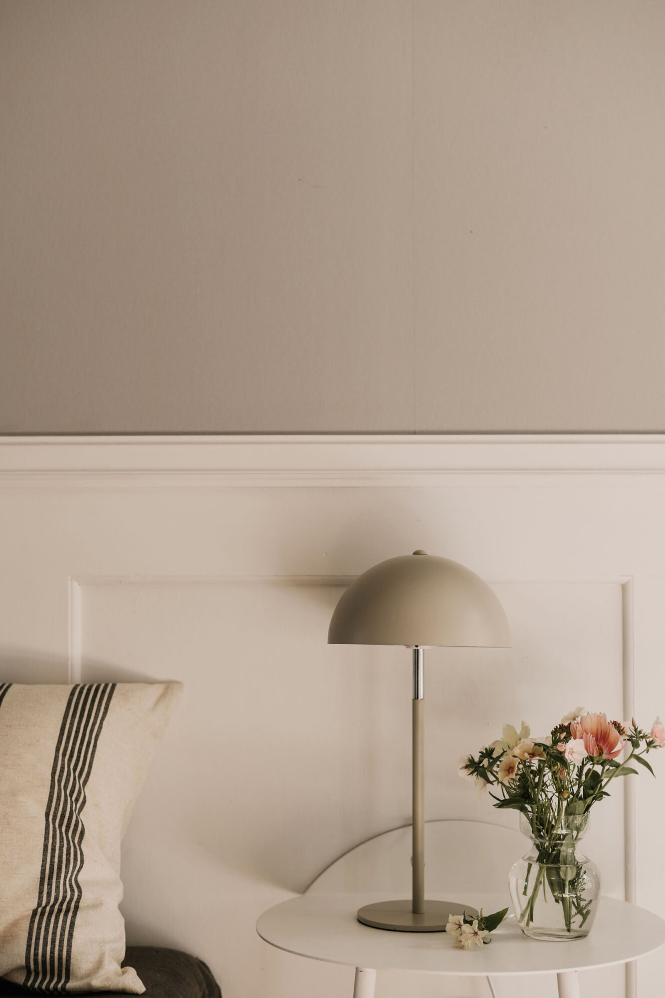 Icon är en läcker bordlampa i mattlackerad metall med kromade detaljer. Här i färgen latte, en harmoniskt beige nyans. Skärmen är vinklingsbar och perfekt som läslampa på skriv-, soff- eller sovrumsbordet. 200 cm lång vit textilkabel med brytare.