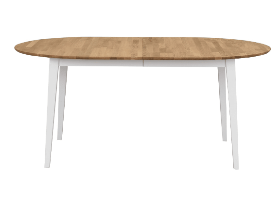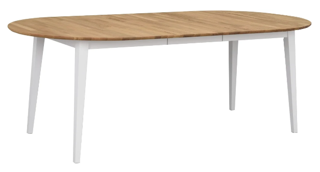 Filippa är ett stilrent och avskalat matbord från Rowico Home med en oval form. Bordet består av 100% FSC®-certifierat trä i ek med en behandlad yta i olja. Detta matchas snyggt med ben i dekorativt vitlackad bok. En iläggsskiva medföljer och med denna blir bordet 210 cm långt.