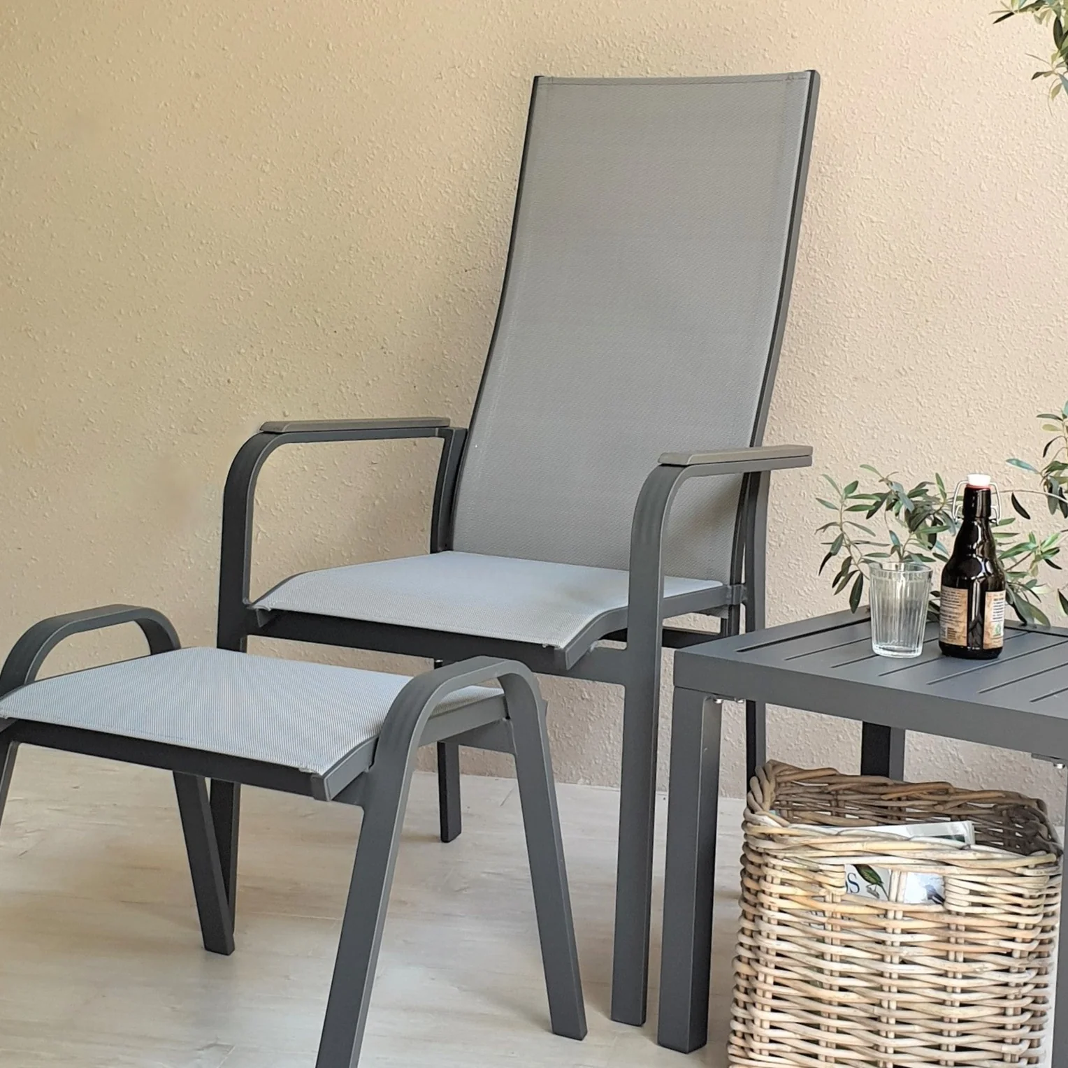 Fotpall som matchar stolen Malta. Här i antracitgrå aluminium/textilene.