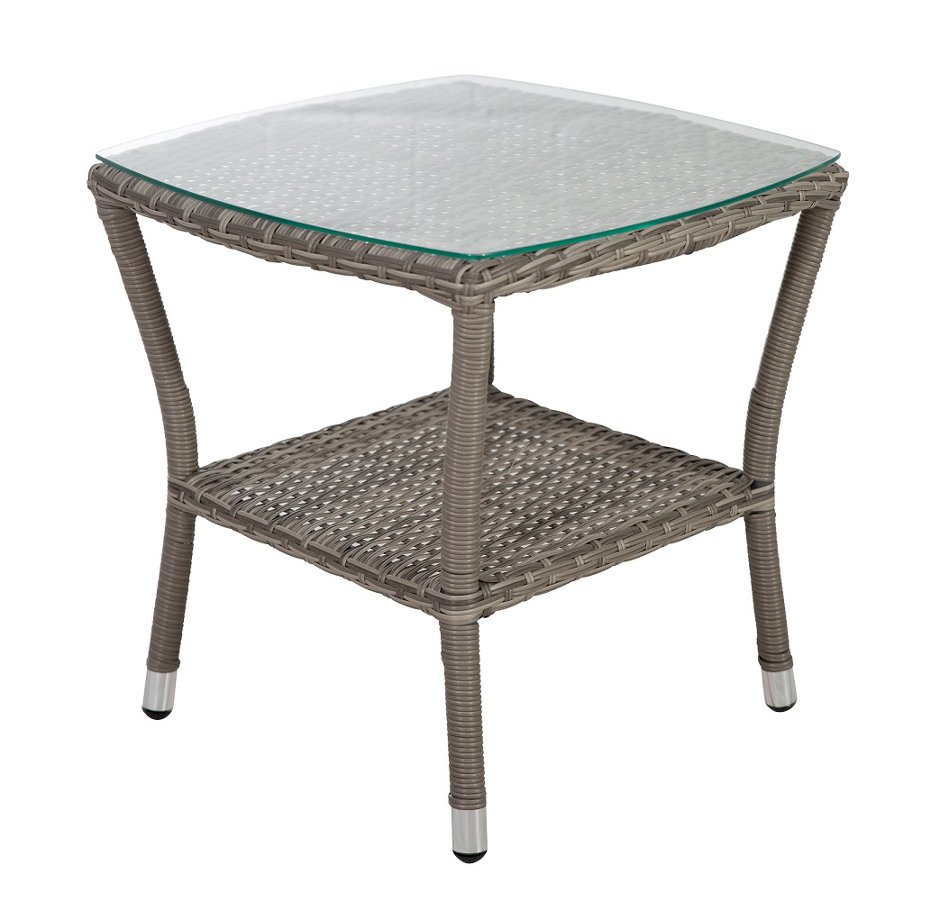 Playa sidobord, ett nätt litet bord i antracitgrå konstrotting. Bordet har en praktisk underhylla och en glasskiva på toppen av härdat glas. Passar utmärkt till till exempel Georgia eller Devon stolen.