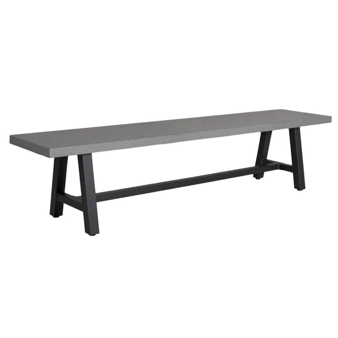 Ada är en modern och mycket tålig bänk. Topp i polyuretanplast med betonglook och stomme i pulverlackerad aluminium.
