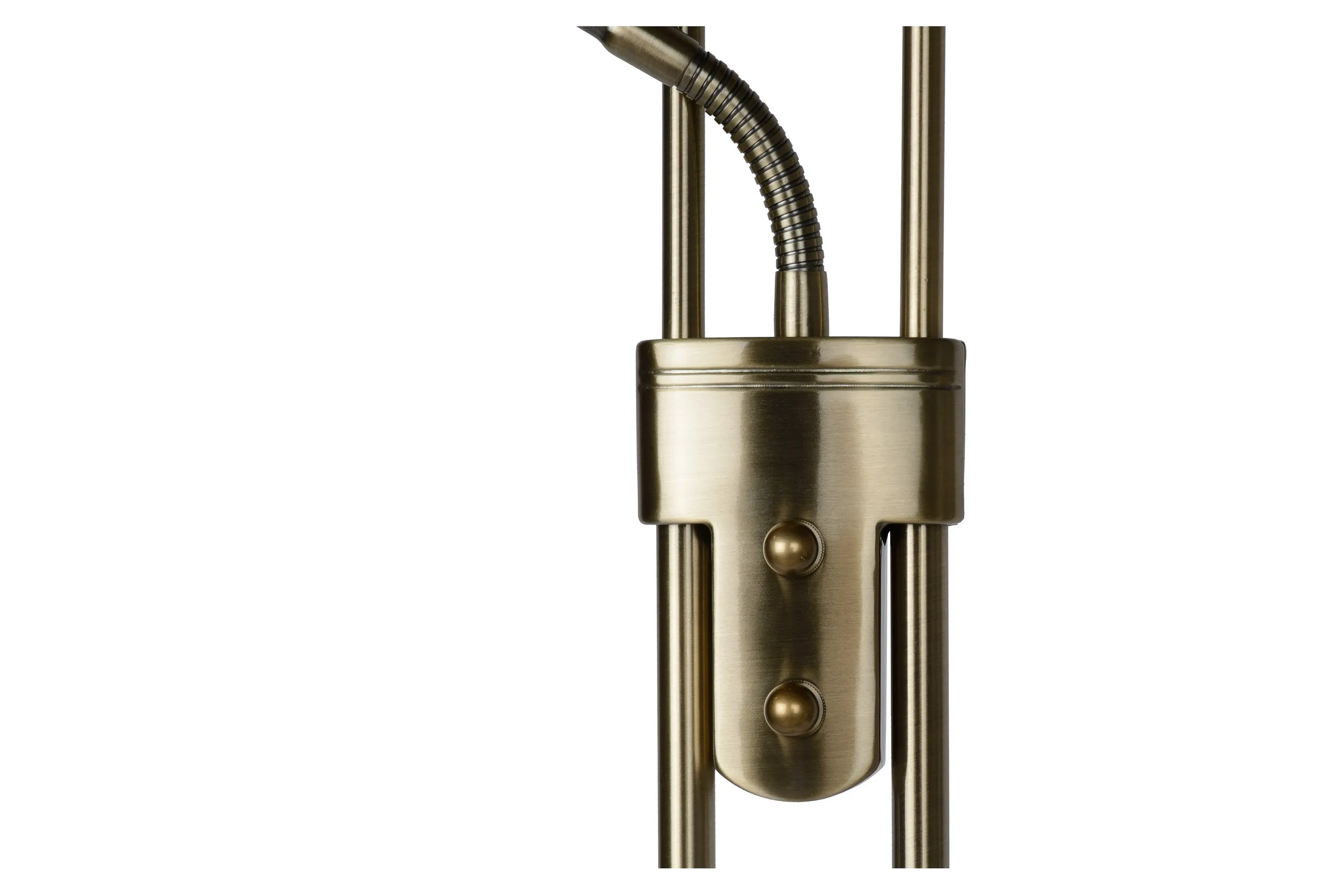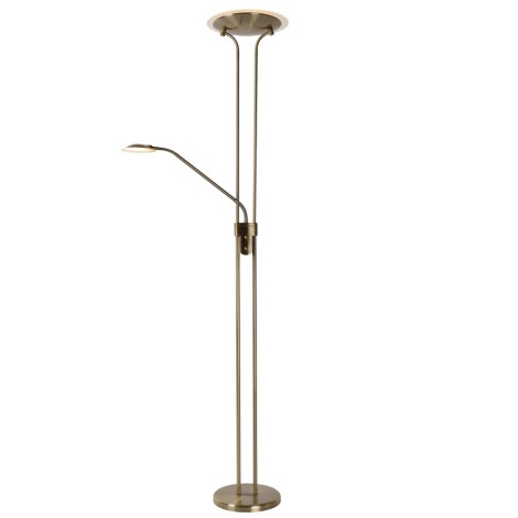 Elegant golvlampa i mattborstad metall, två integrerade LED-lampor som ger ett varmvitt ljus och som är dimbara på lampan.