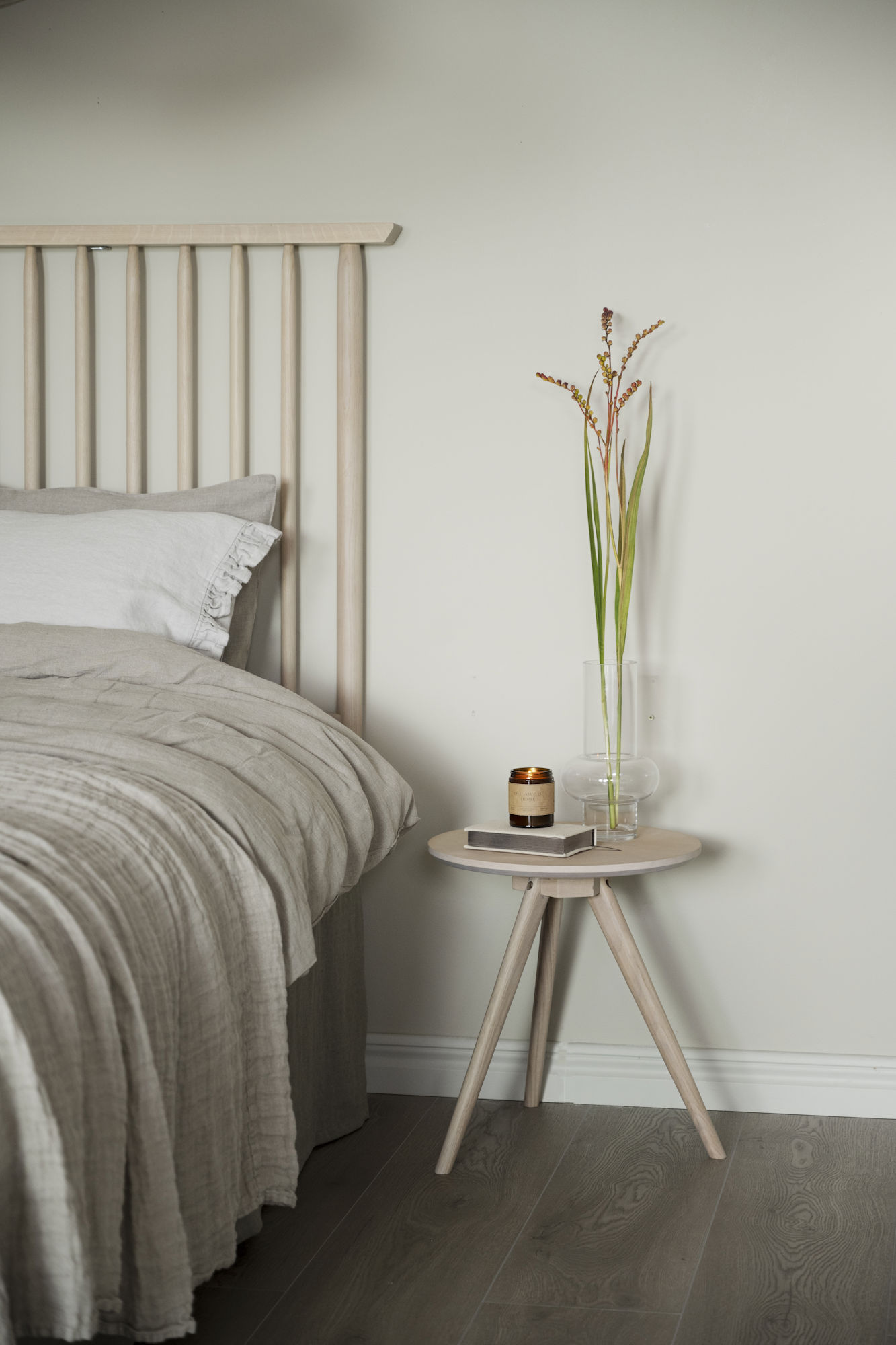 Riggins sänggavel i skandinavisk design är en unik och stilren sovrumsmöbel av massiv ek som passar perfekt till 180 cm breda sängar. Sänggaveln med de runda detaljerna matchas utmärkt till sängborden Camrose. Kombinera med vägghängda sänglampor eller pendellampor ovanför sängborden för ett riktigt stilsäkert sovrum. Riggins sänggavel matchas även bra med de trendiga pinnstolarna Lotta och Carmen, som exempelvis kan användas som både sängbord och avlastningsyta i sovrummet. Tack vare de justerbara metallbenen kan du själv välja höjd på sänggaveln, från 125 till 149 cm. Höjd exkl ben: 84 cm. Finns även i svart ek.