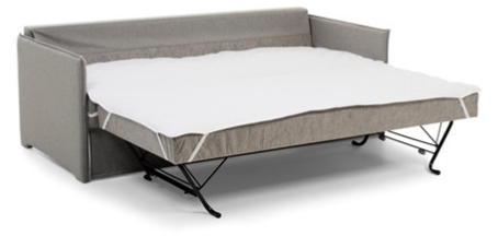 Olympia har bra komfort och enkel användning. Du får flera bekväma sittplatser, det finns gott om plats att förvara sängkläder, levereras med två madrasser. Kan användas som två enkelsängar eller en dubbelsäng. Du ligger i längdriktningen på denna modell av 3-sits som är särskilt lämplig för smala rum.
