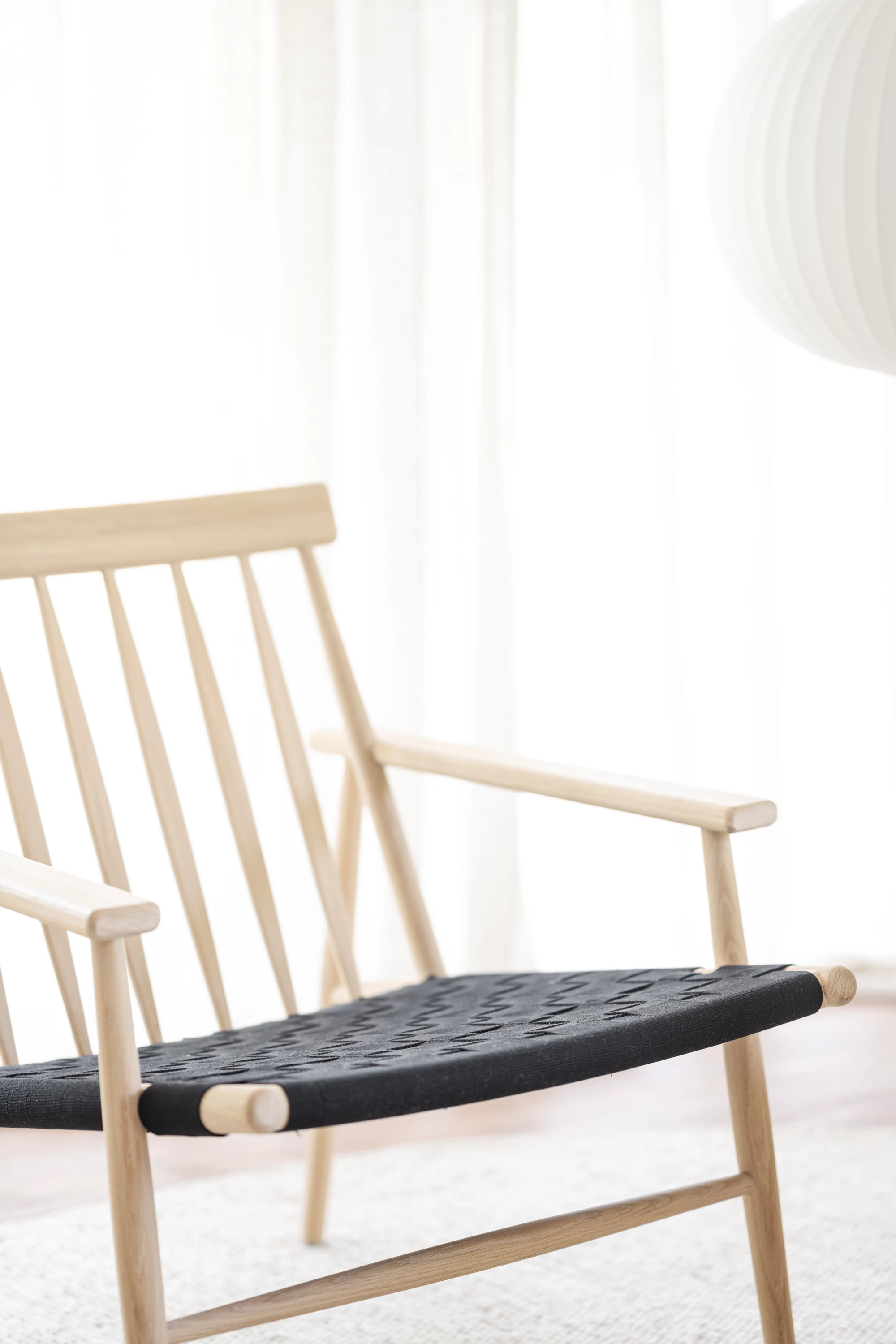 Loungestolen Canwood i vitpigmenterad ek blir med sina stilrena linjer och moderna uttryck ett vackert blickfång i det skandinaviska hemmet. En elegant och hållbar fåtölj som består av FSC-certifierat trä. Den handflätade svarta sitsen av sadelgjord skapar en snygg kontrast till den harmoniska eken. Luta dig tillbaka mot Canwoods eleganta ryggstöd av släta träpinnar eller komplettera loungestolen med valfri kudde för extra komfort.
