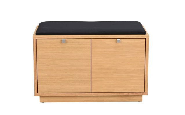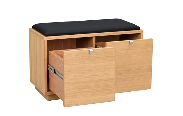 Confetti sittbänk i fanerad ek. Praktisk och stilren sittbänk med två rymliga lådor som tar hand om förvaringen. Ingår i hallserien Confetti.