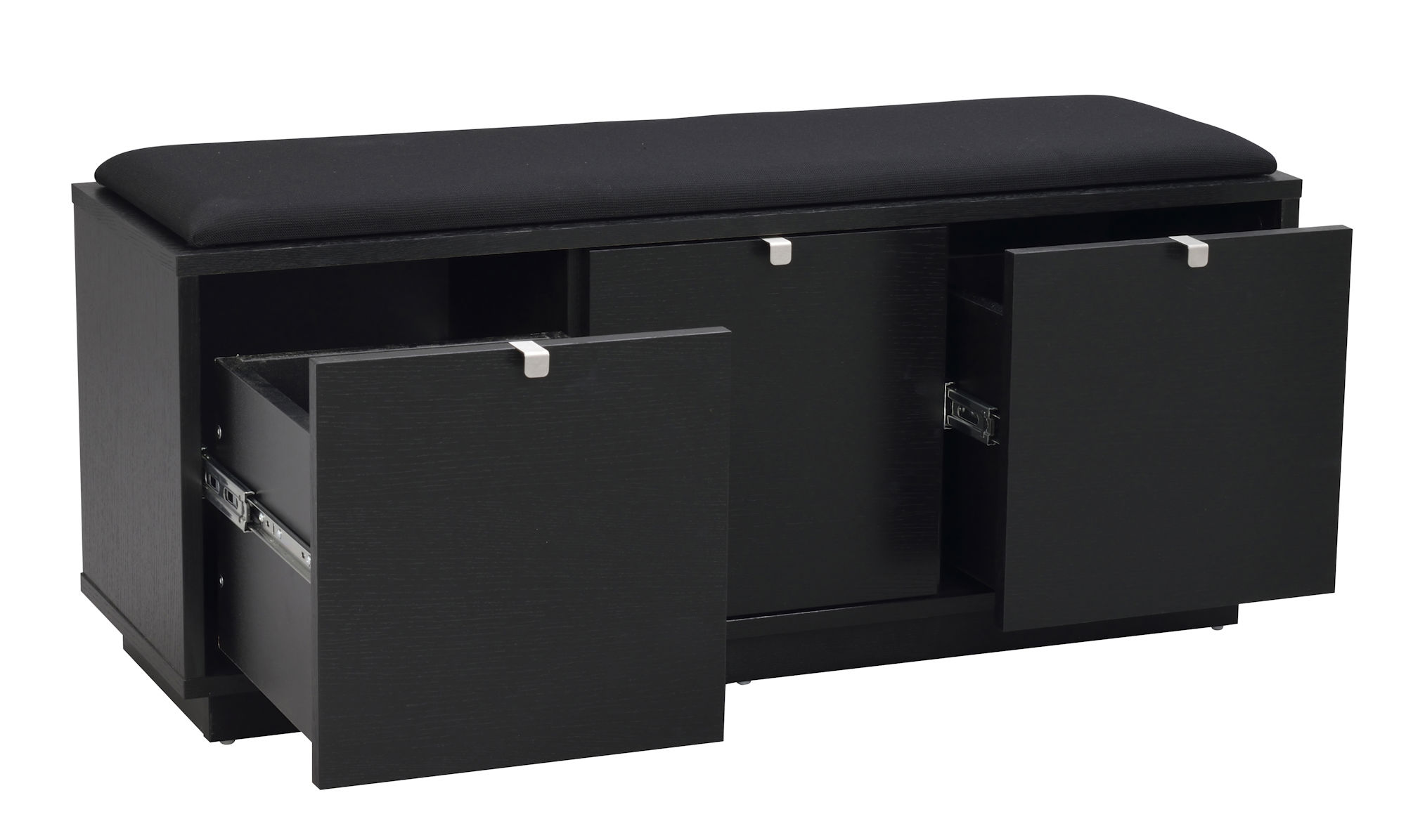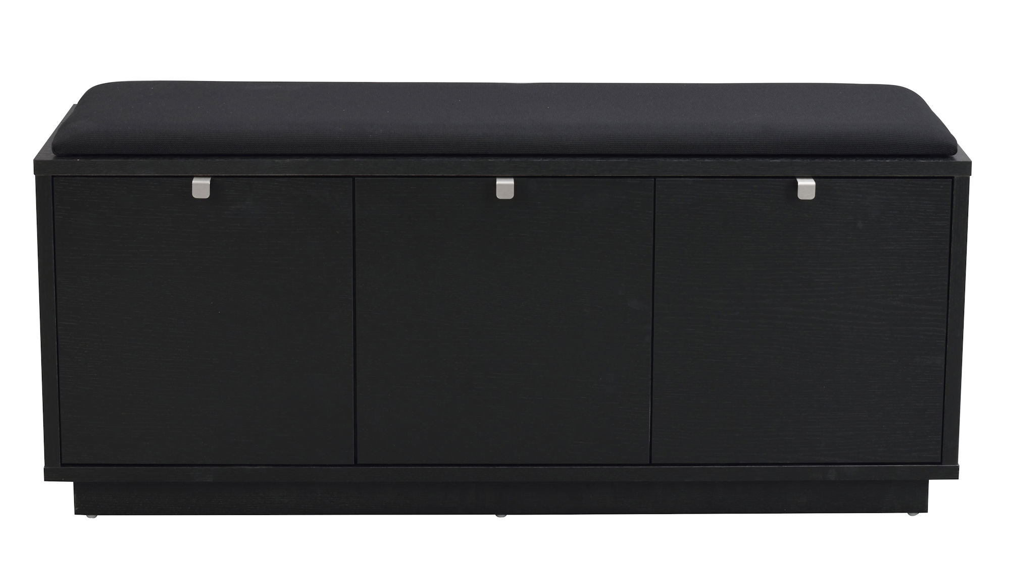 Confetti sittbänk i fanerad svartlackad ek. Praktisk och stilren sittbänk med tre rymliga lådor som tar hand om förvaringen. Sittbänken ingår i hallserien Confetti.