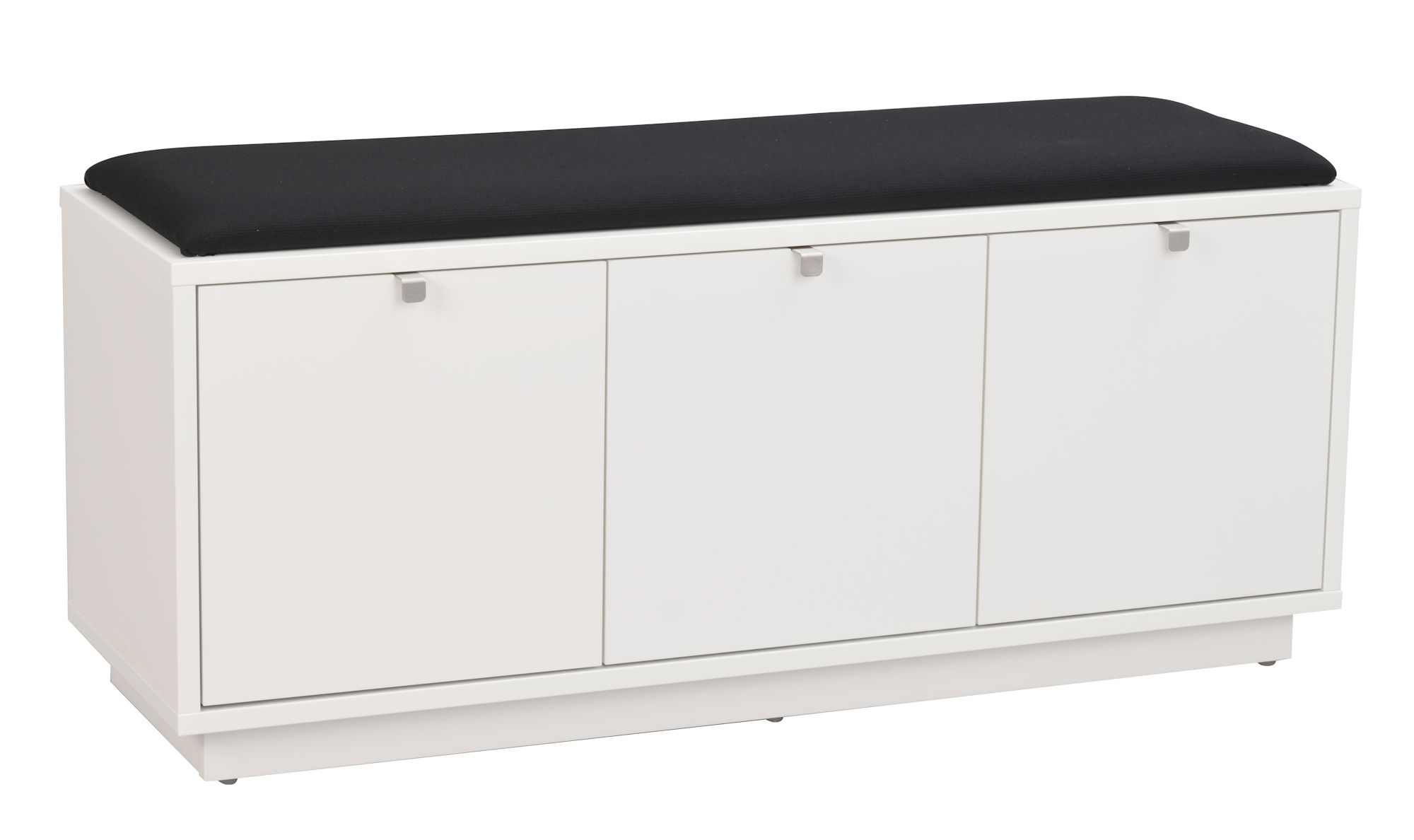 Confetti sittbänk i vitlackad MDF. Praktisk och stilren sittbänk med tre rymliga lådor som tar hand om förvaringen. Sittbänken ingår i hallserien Confetti.