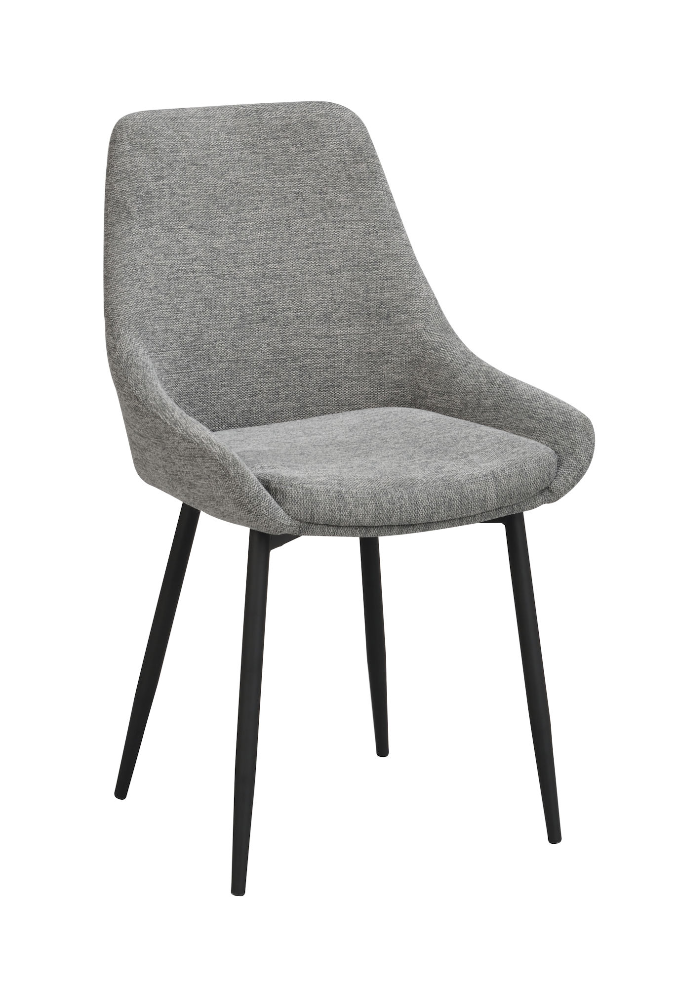 Populära Sierra stol i modern design med skön sittkomfort. Stolen finns i flera olika färger och passar perfekt i våra skandinaviska hem. Här syns den med sits i grått polyestertyg. Tyget har hög slitagenivå och stolen har tåliga ben i svart pulverlackad metall. Sierra stol passar utmärkt runt matbordet men även som udda stol i hallen, sovrummet eller till skrivbordet. Stolen är FSC-certifierad.