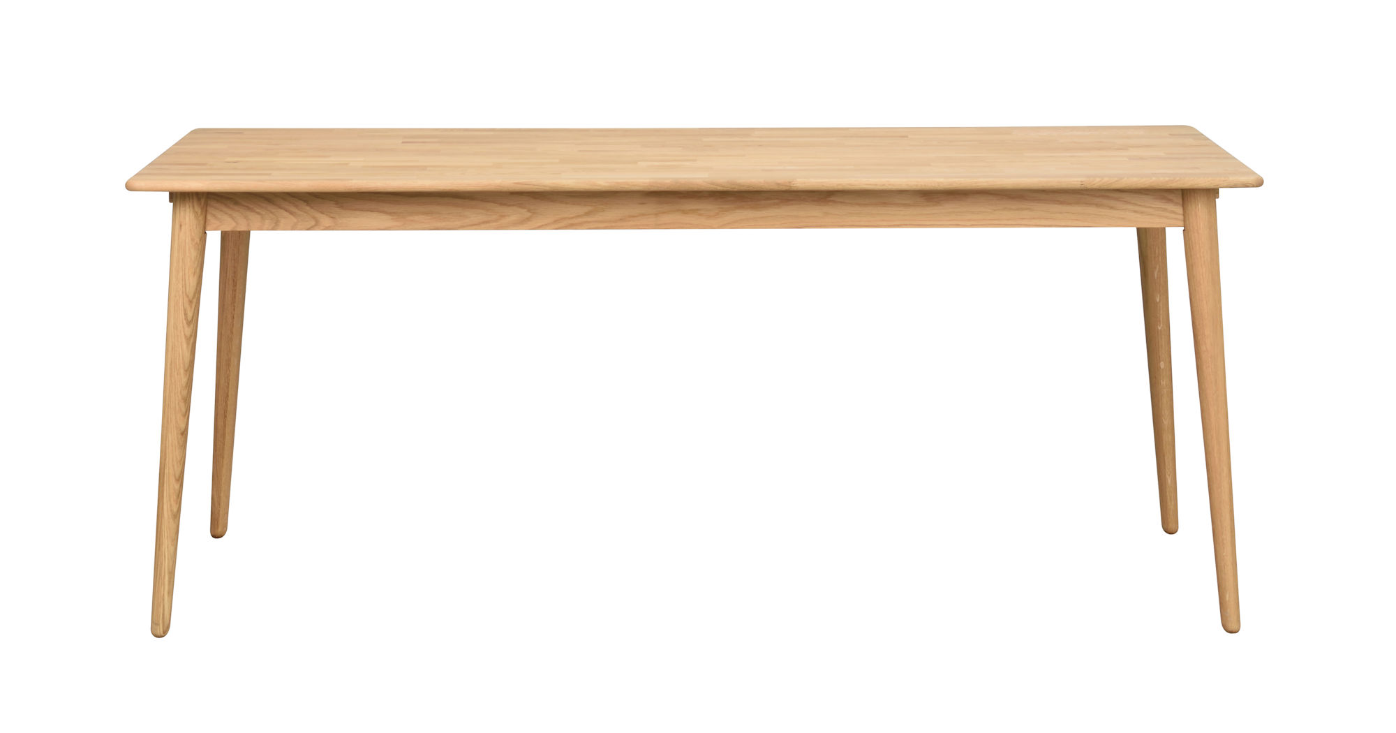Ett skandinaviskt matbord i massiv oljad ek som består av 100% FSC-certifierat trä. Bordet kan kompletteras med två tilläggsskivor och bli 280 cm långt. Tänk på att oljebehandlade ytor ska behandlas med möbelolja innan det används och sedan regelbundet 2- 3 gånger per år. Detta gäller speciellt bordets toppskiva för att bibehålla motståndskraft mot fläckar och repor på bästa sätt.