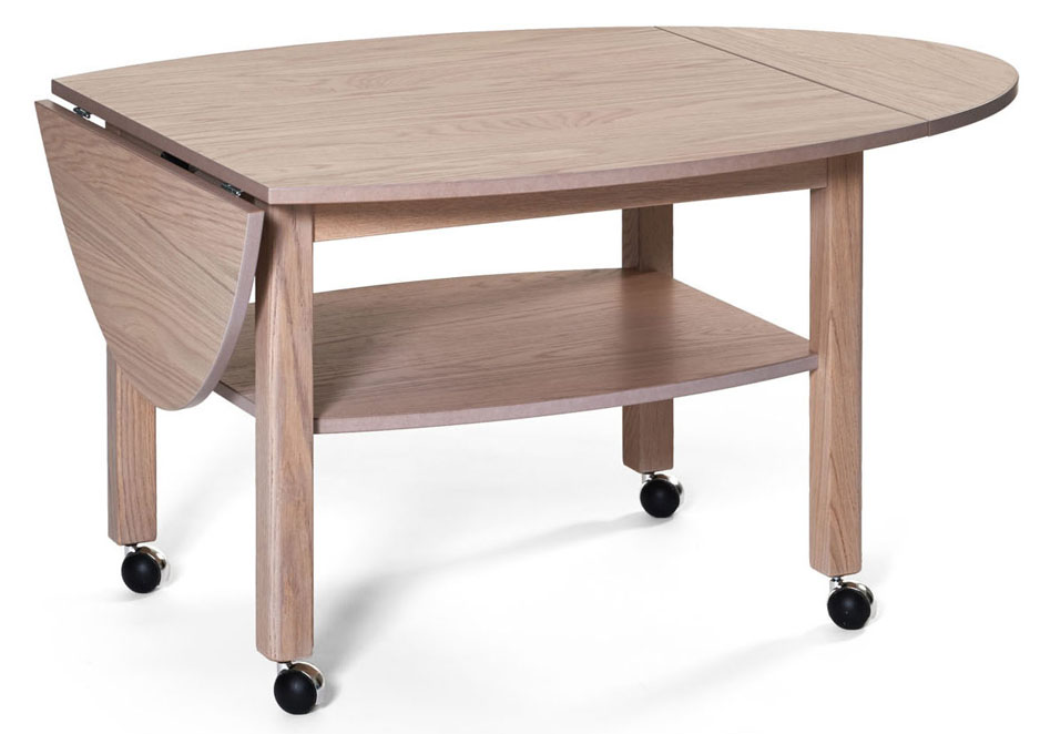 Havanna klaffbord är ett smidigt soffbord för vardagsrummet. Det är ett praktiskt bord på hjul, som gör det lätt att flytta på och med sina klaffar, som smidigt gör bordet större. Med klaffarna uppfällda, har bordet en mjukt oval form. Soffbordet har även underhylla. Svensktillverkat! Finns i flera olika färger.