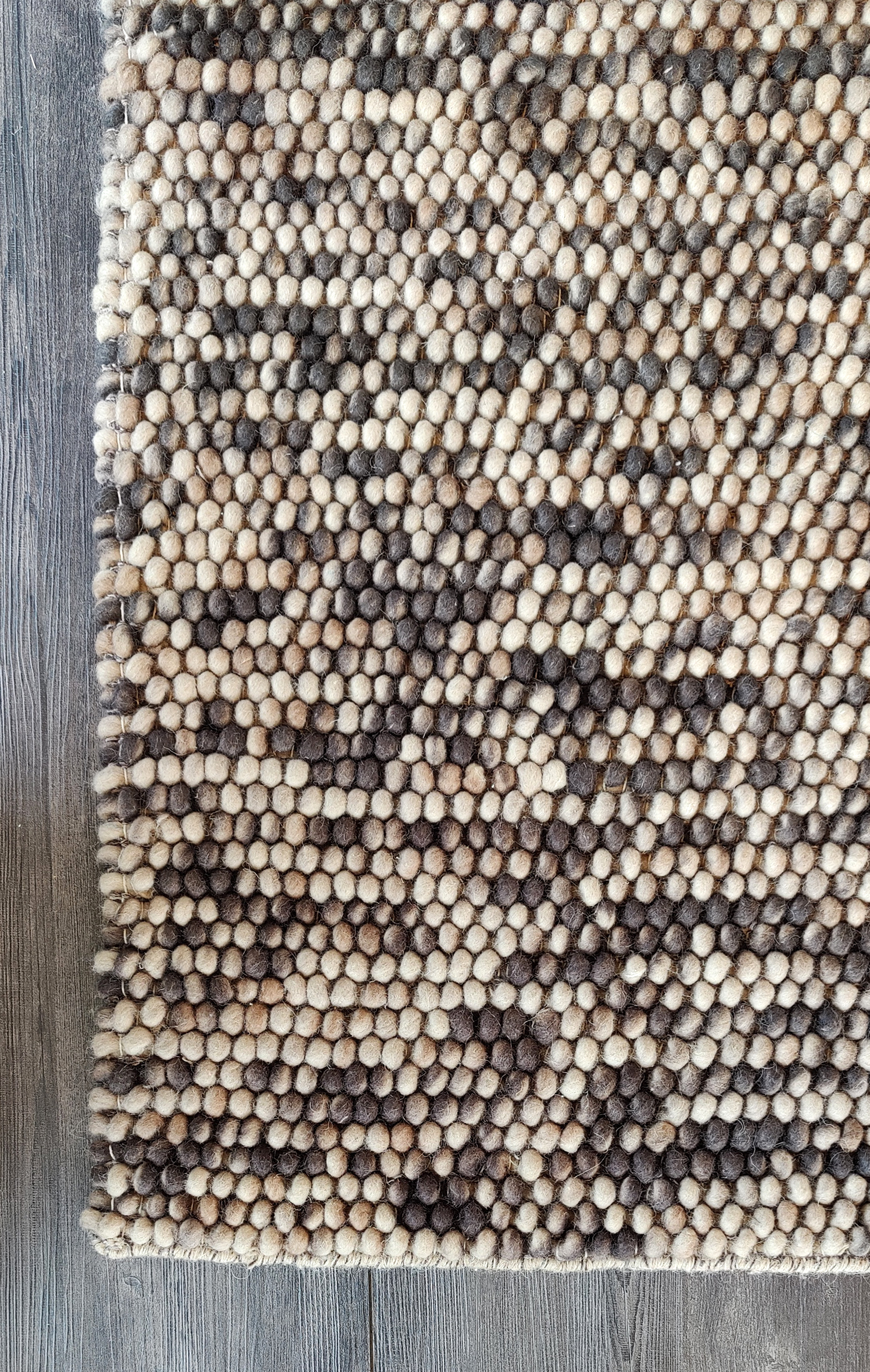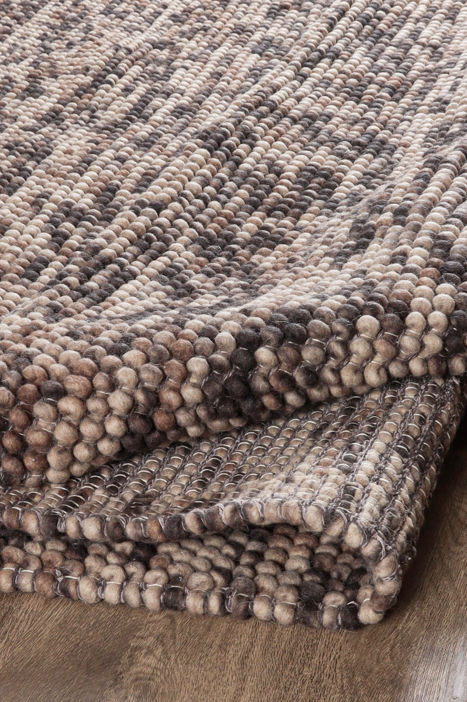 Nirvana är en tjock ullmatta i mjukt bruna och beige nyanser. Det melerade garnet som skiftar i flera färger gör att mattan får ett livfullt utseende. Färgskalan är lätt att matcha med övrig interiör och Nirvana passar fint till flera olika inredningstilar. Mattan är vävd för hand i en speciell vävteknik som ger en grov struktur som liknar små bollar av ull. En matta av hög kvalitet som passar fint i exempelvis vardagsrummet.