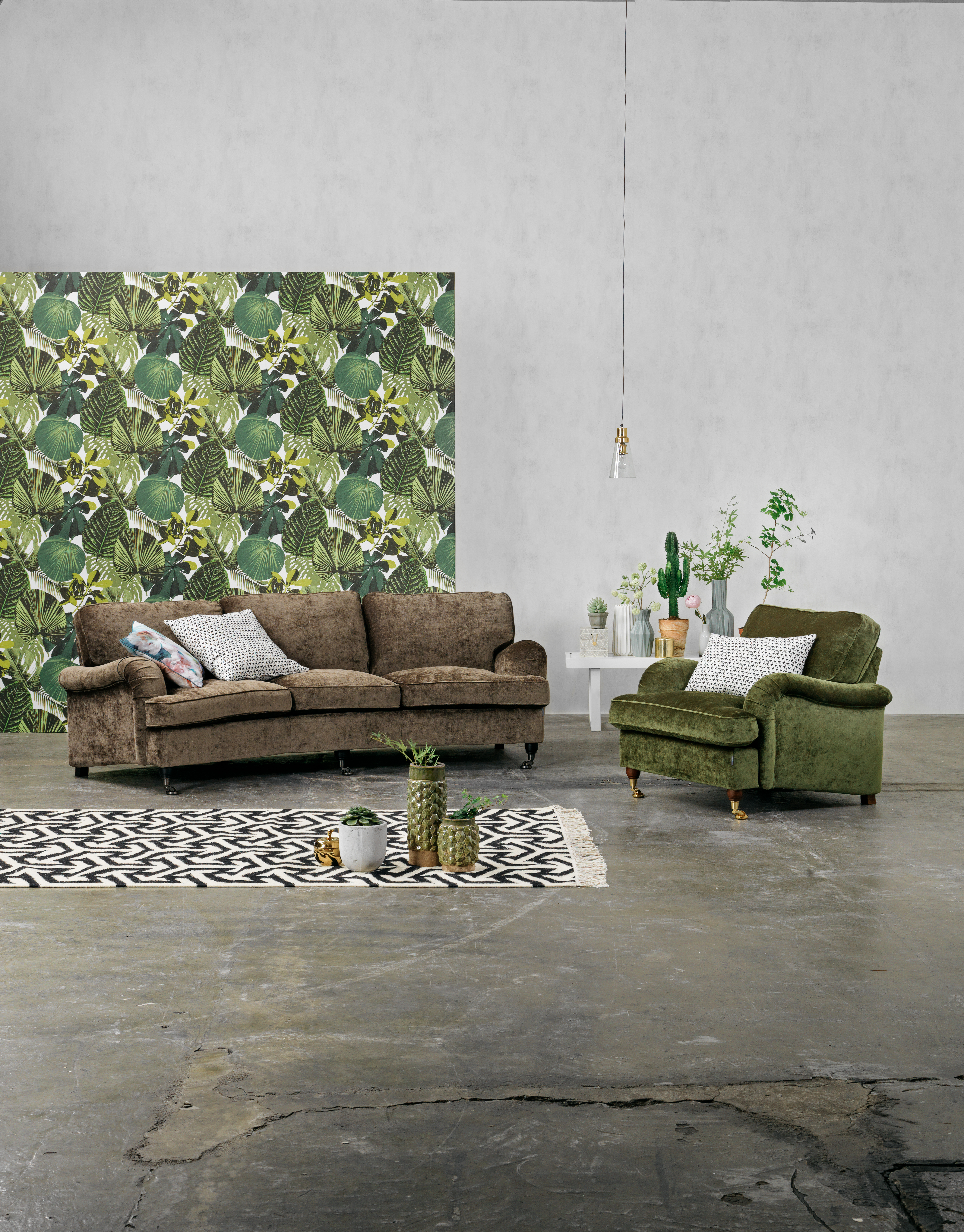 London soffa 3-sits svängd C2 tyg Eros earth/ek mässing