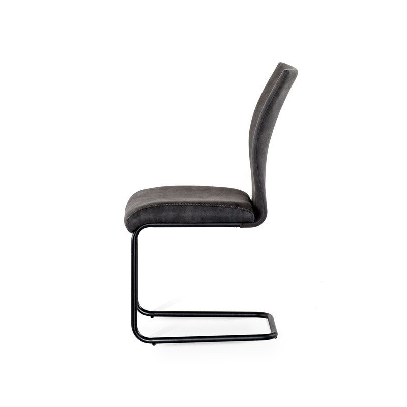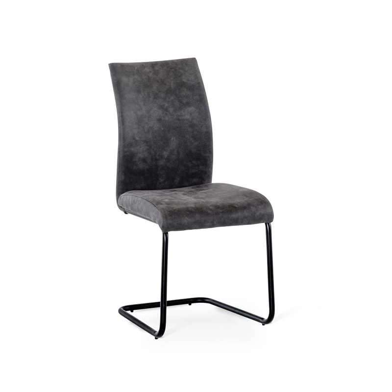 Ray är en stilren och bekväm stol med sits i grått microfibertyg. Underrede i svartlackad metall. Stolen är lättskött och bekväm med ett härligt gung i sin sits. Uppskattad och väldigt populär stol.