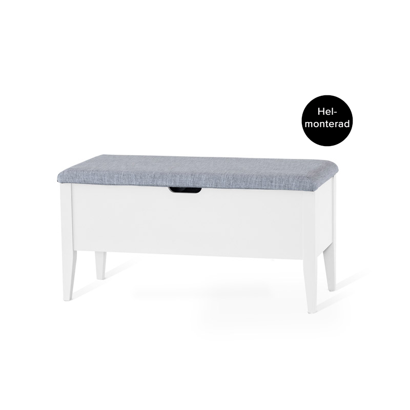 Klinte bänk 45 cm vitlack med tyg Chelsea ljusgrå