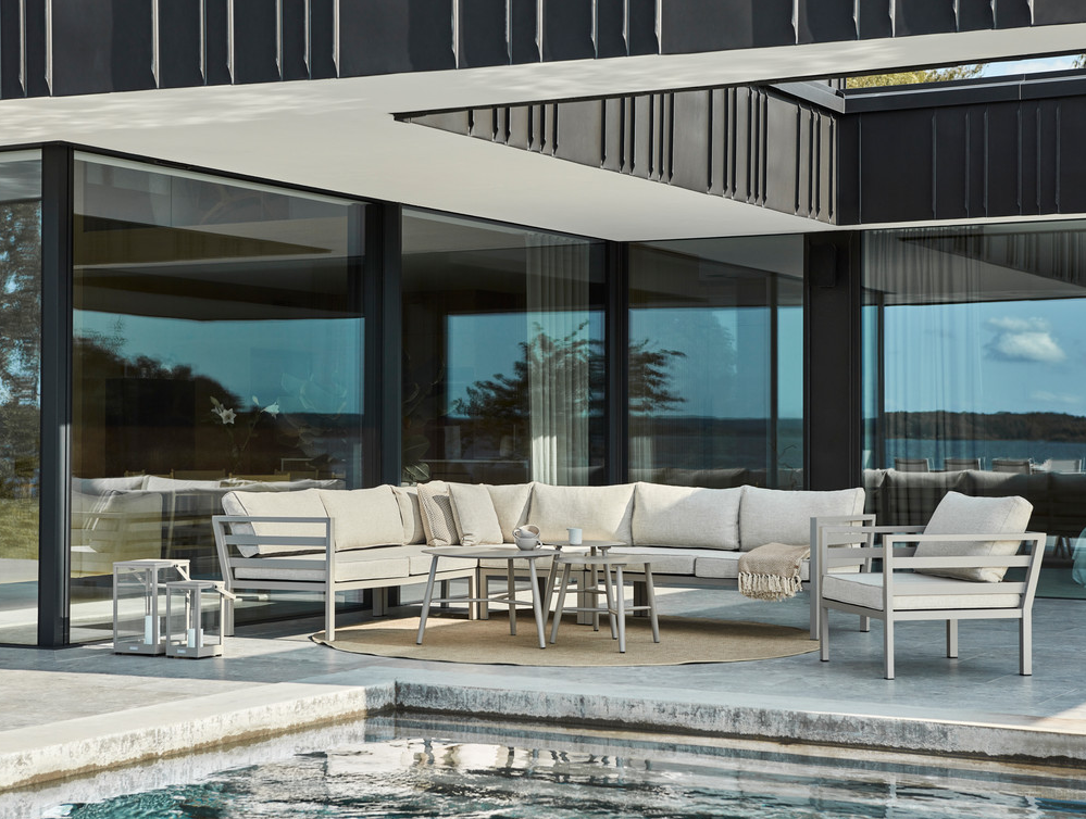 Weldon hörnsoffa 2H2. Bekymmersfri sommar med allvädersdynor! Med Weldons unika allvädersdynor behöver du inte vara orolig om du glömt dynorna framme under någon av sommarens alla regnskurar. Dynorna torkar snabbt och är gjorda av material som tål utomhusbruk extra väl. En byggbar serie, kan kompletteras med fler mittdelar för en större soffa.