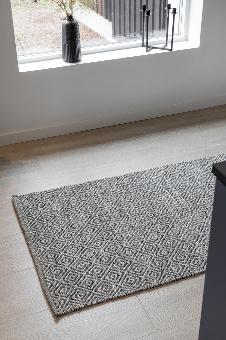 Abisko grey mix är en handvävd ullmatta med ett klassiskt gåsögamönster. Längs med mattans kortsidor löper en vävd kant som blir en enkel men vacker detalj. En slät ullmatta som är lätt att sköta och som därför passar bra även i köket eller matsalen. Abisko är en modern klassiker som med sin tidlösa design harmonierar väl med de flesta hem och stilar. Den behagligt melerad färgpaletten är noga avvägd och går i grå toner.