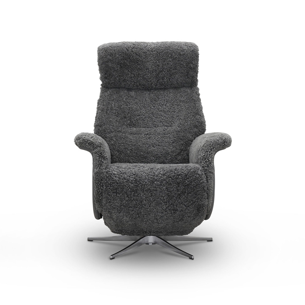 Lissabon är en reclinerfåtölj med hög komfort. Du styr enkelt fåtöljen med knappar som är placerade på armstödet till höger. Tack vare ett system med två motorer regleras fotstöd och ryggstöd separat. Denna modell har även snurrfunktion, ställbart ryggstöd som formas efter ryggen samt ett reglerbart och höj- och sänkbart nackstöd – allt för extra skön komfort. Klädd i fårskinn, finns i tre färger.