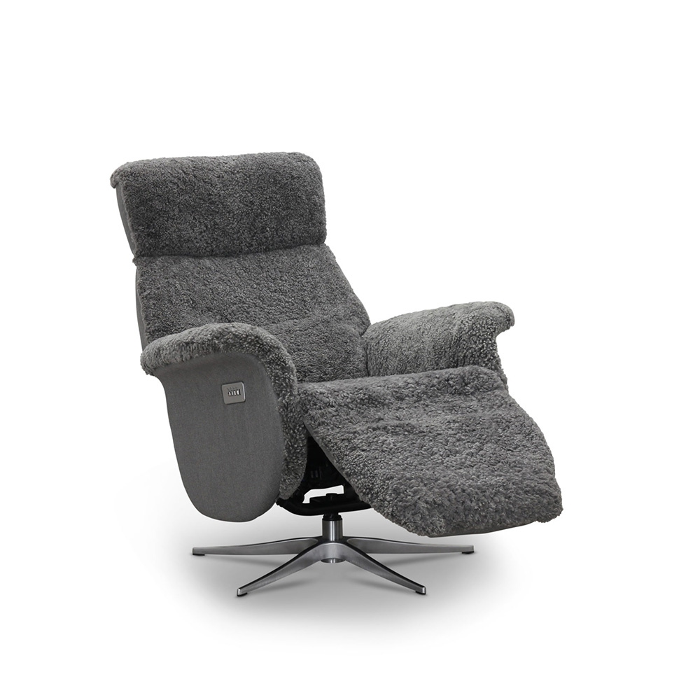 Lissabon fåtölj flip-up motorrecliner fårskinn ljusgrå