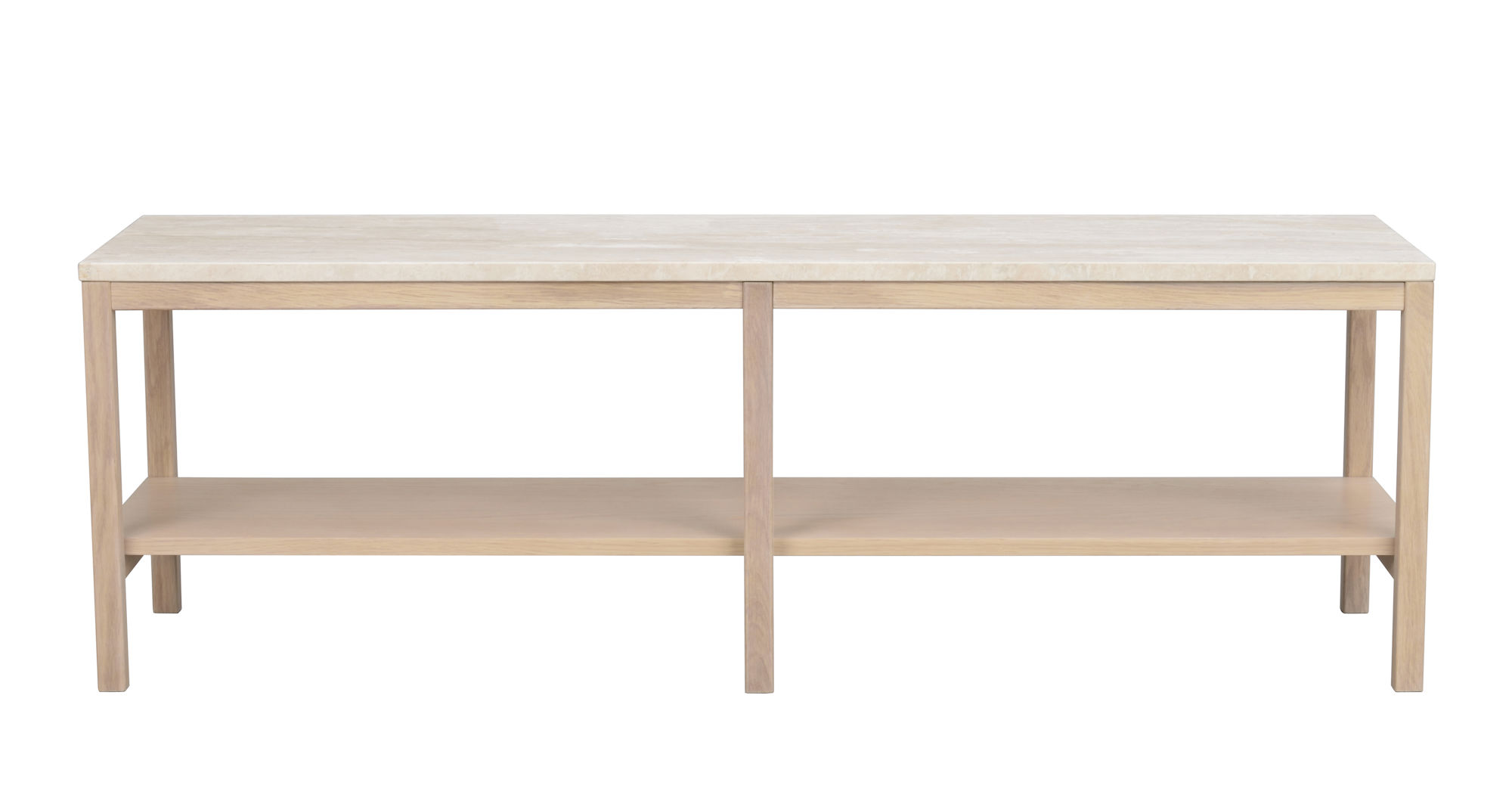Orwel avlastningsbord 140xH45 cm beige travertin/vitpigmenterad ek