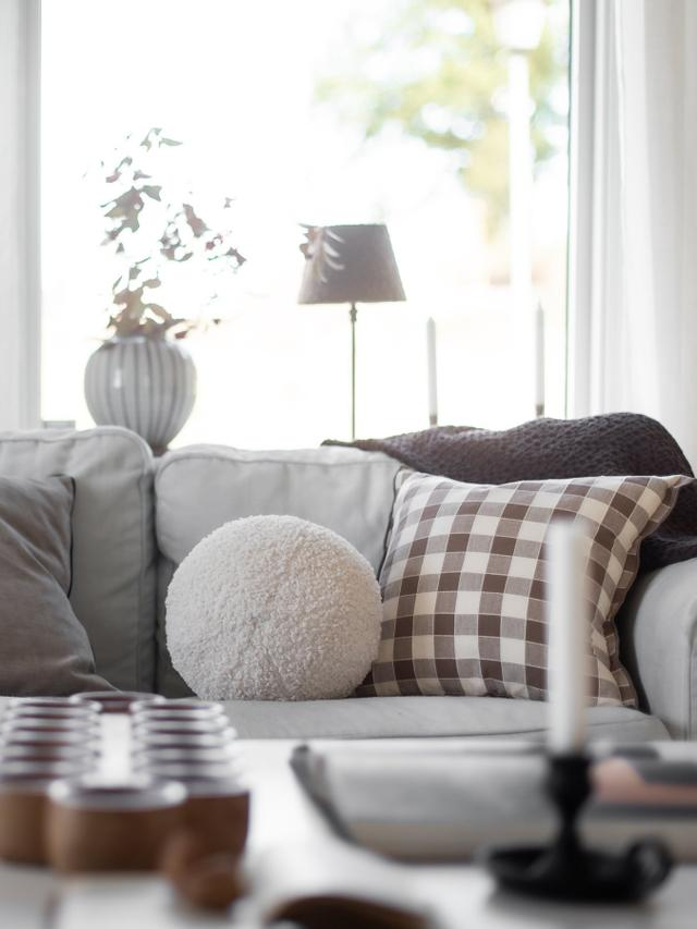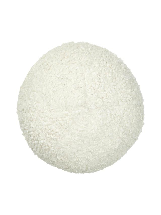Bollformad kudde med mjukt flossat tyg. 25cm i diameter. Formen gör den lättplacerad och fyllningen ger bra stöd.