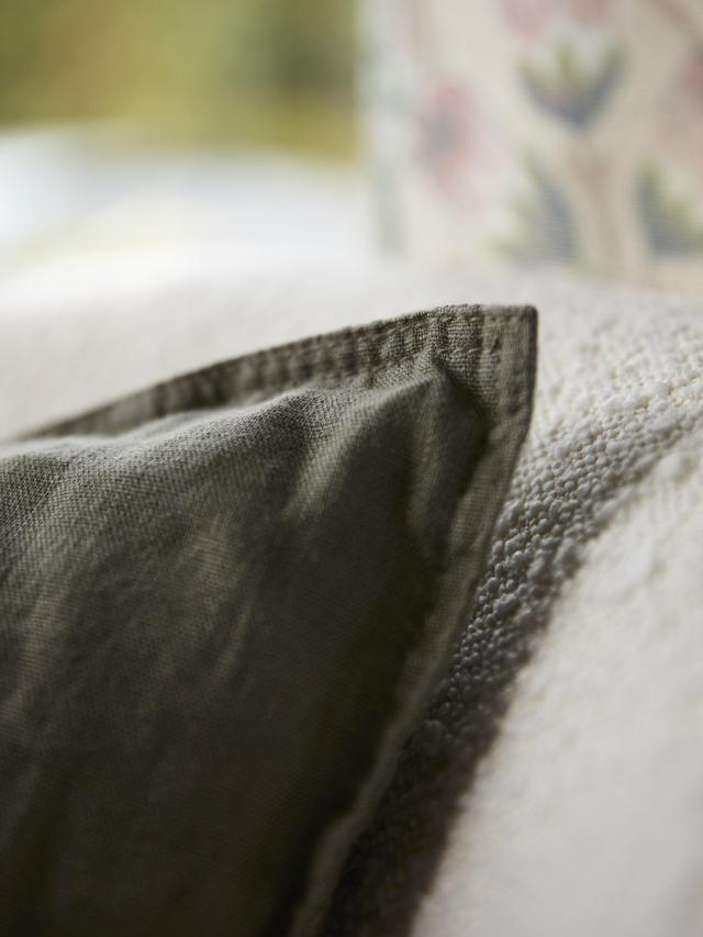 Enfärgat kuddfodral i lätt tumlad linnekvalitet. Linet kommmer från Belgien och Frankrike och ger tyget en vacker och naturlig struktur med rustik och exklusiv känsla. Dragkedja i nederkant och en dekorativ jeanssöm runt alla fyra sidor. Innerkudde köpes separat.