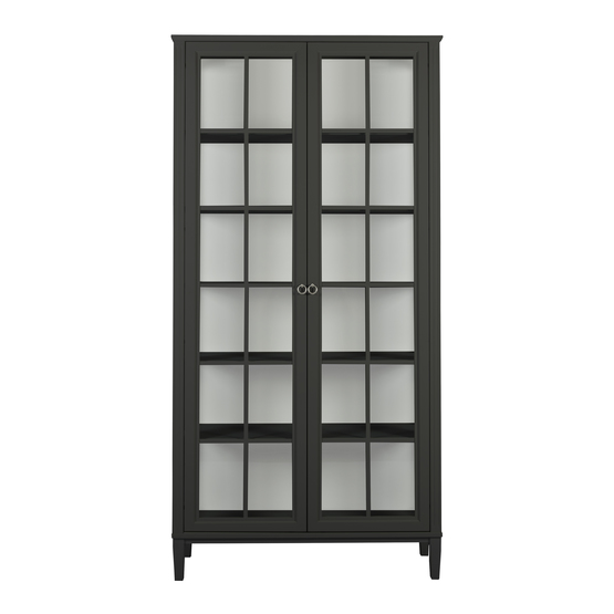 Lättplacerat vitrinskåp med gott om förvaring. Vitrinskåpet erbjuds i färgerna Whitewash, Grey och Black och har 5 hyllplan med glasdörrar och glassidor. Varje hyllplan i skåpet har en infräst LED list som styrs med en trådlös dimmer.