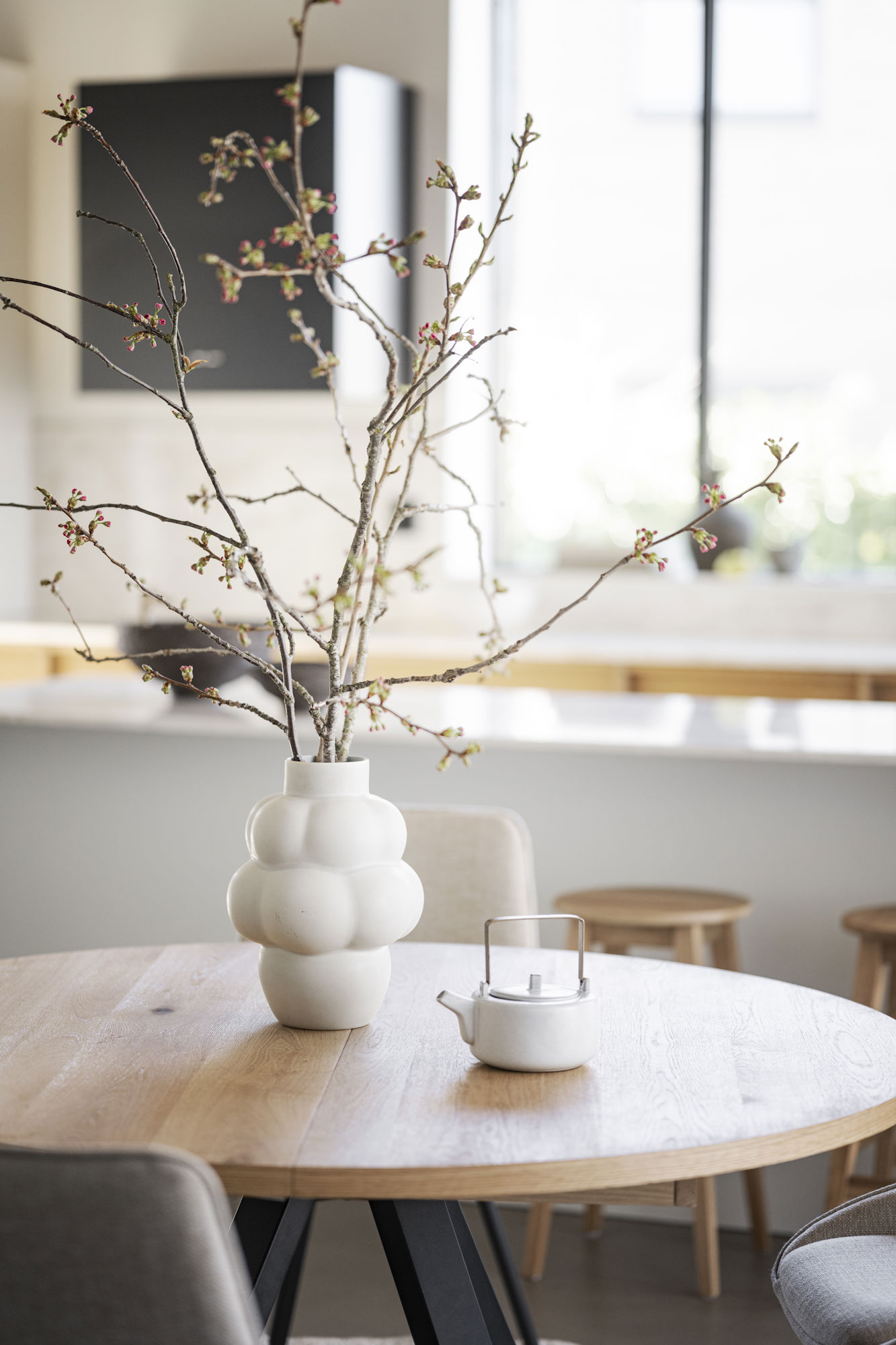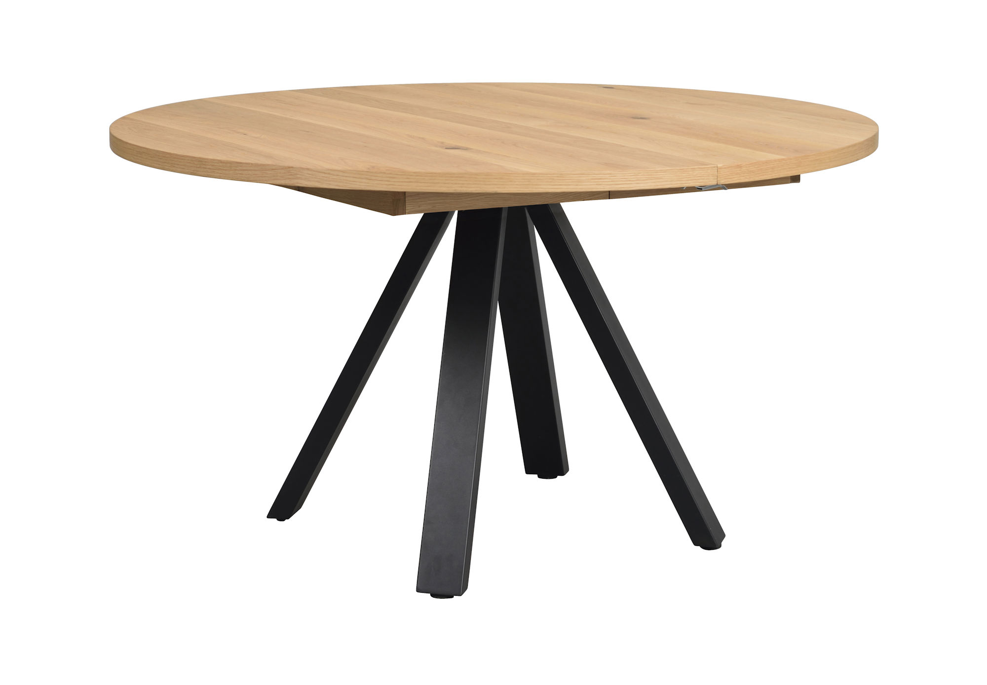 Maddock är ett praktiskt och förlängningsbart runt matbord med bordsskiva av FSC®-certifierad oljad ek och svarta pulverlackerade metallben. Matbordet blir blickfånget i rummet och förmedlar en stabil och stilsäker känsla. Skapa gemenskap och utrymme för fler genom att köpa till 1 eller 2 iläggsskivor och omvandla det till ett stort ovalt bord. Tack vare att trä med synliga kvistar har tagits tillvara i tillverkningen så har varje bord en unik träkänsla. Bordsskivan är semimassiv och det innebär att toppen består av 3 mm massiv ekfaner, vilket gör den mycket hållbar. Högkvalitativt och hållbart – detta är ett matbord att använda och älska i många år framöver. Finns även i brunoljad ek.